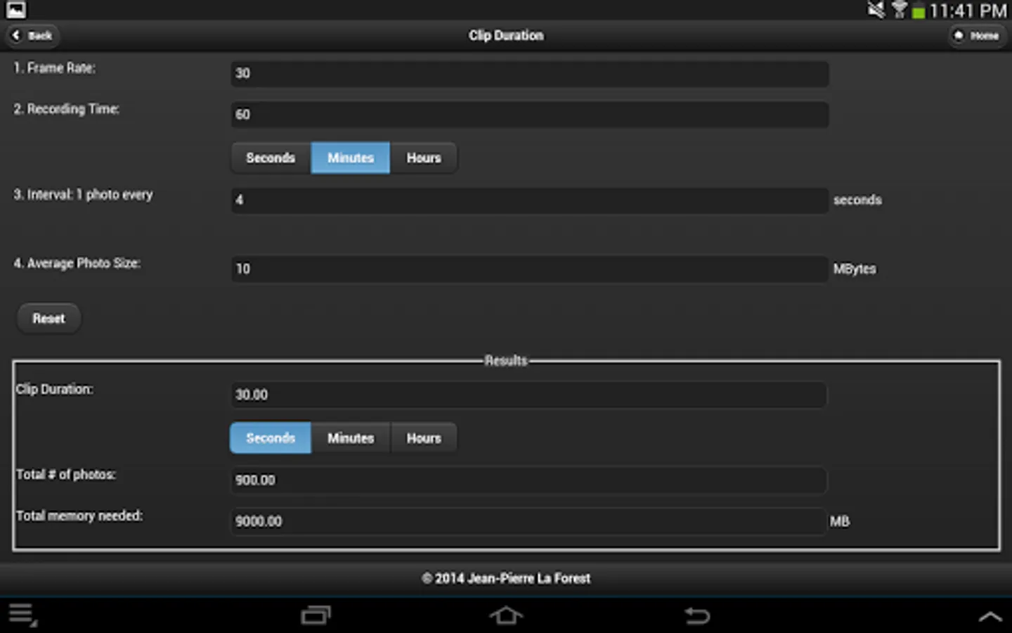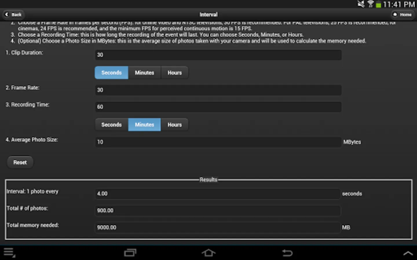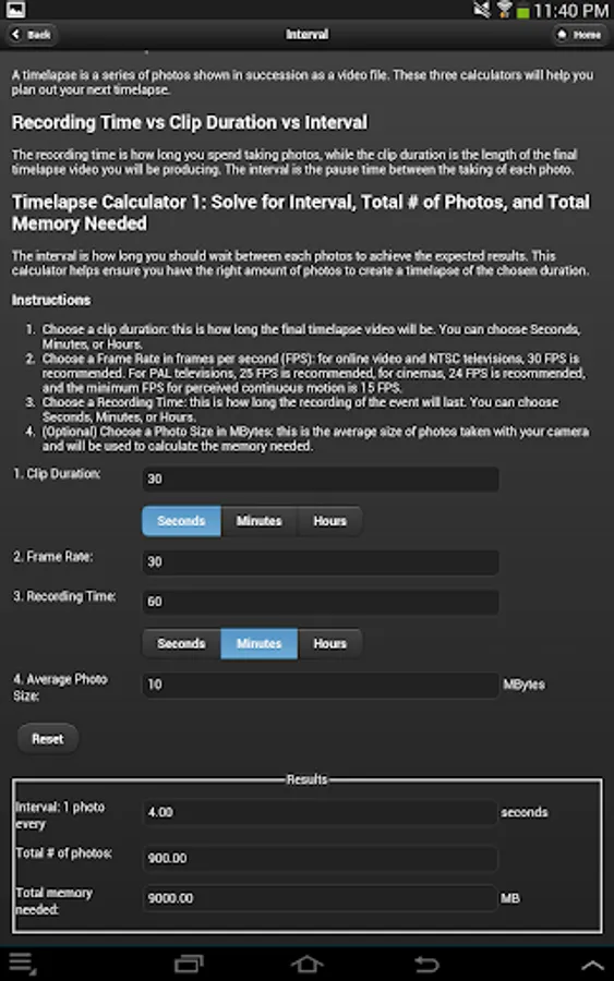 • Timelapse Interval - Helps you choose an interval for your timelapses.