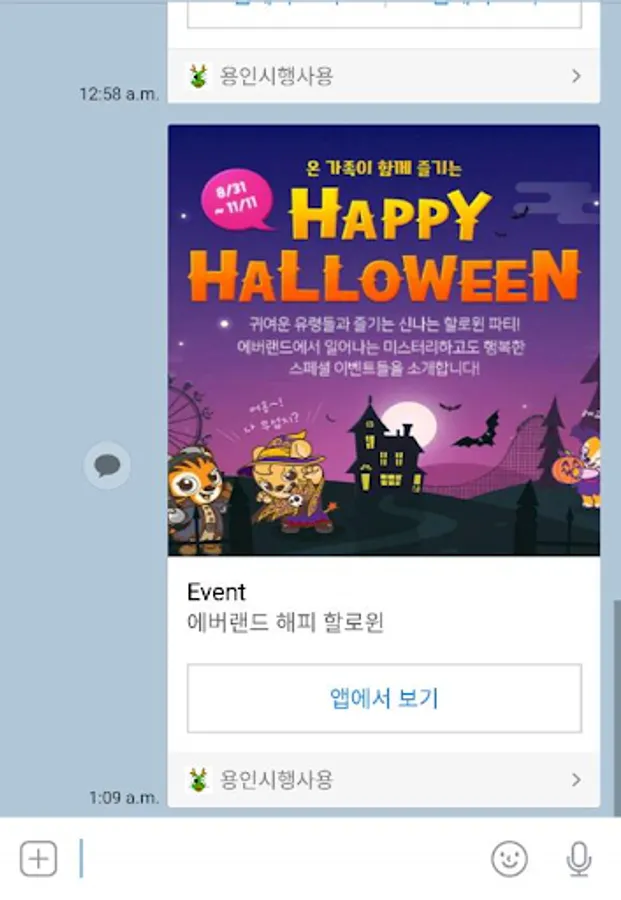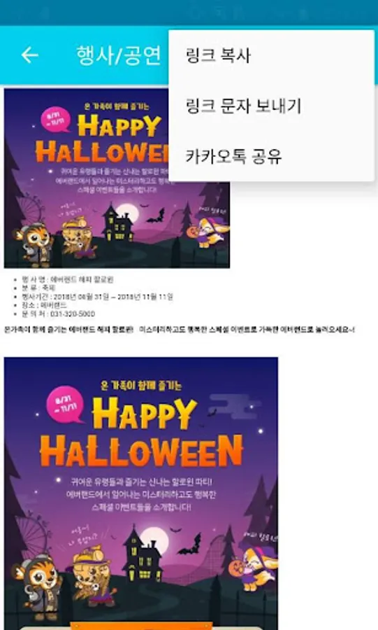 Event links can be shared with friends by text or KakaoTalk.