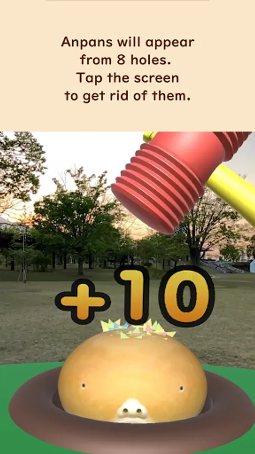 Tap to hit the Anpan as they pop out of the 8 holes, you will get 10 points for each hit, and if you can hit them within 1 second you will get 30 points. The time limit is extended by clearing the scores according to the level.