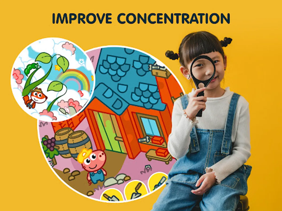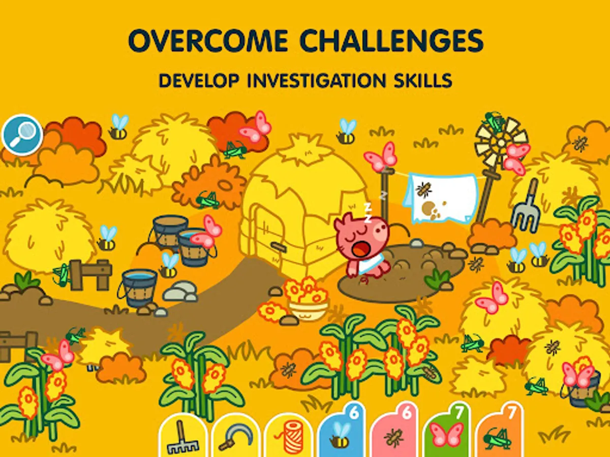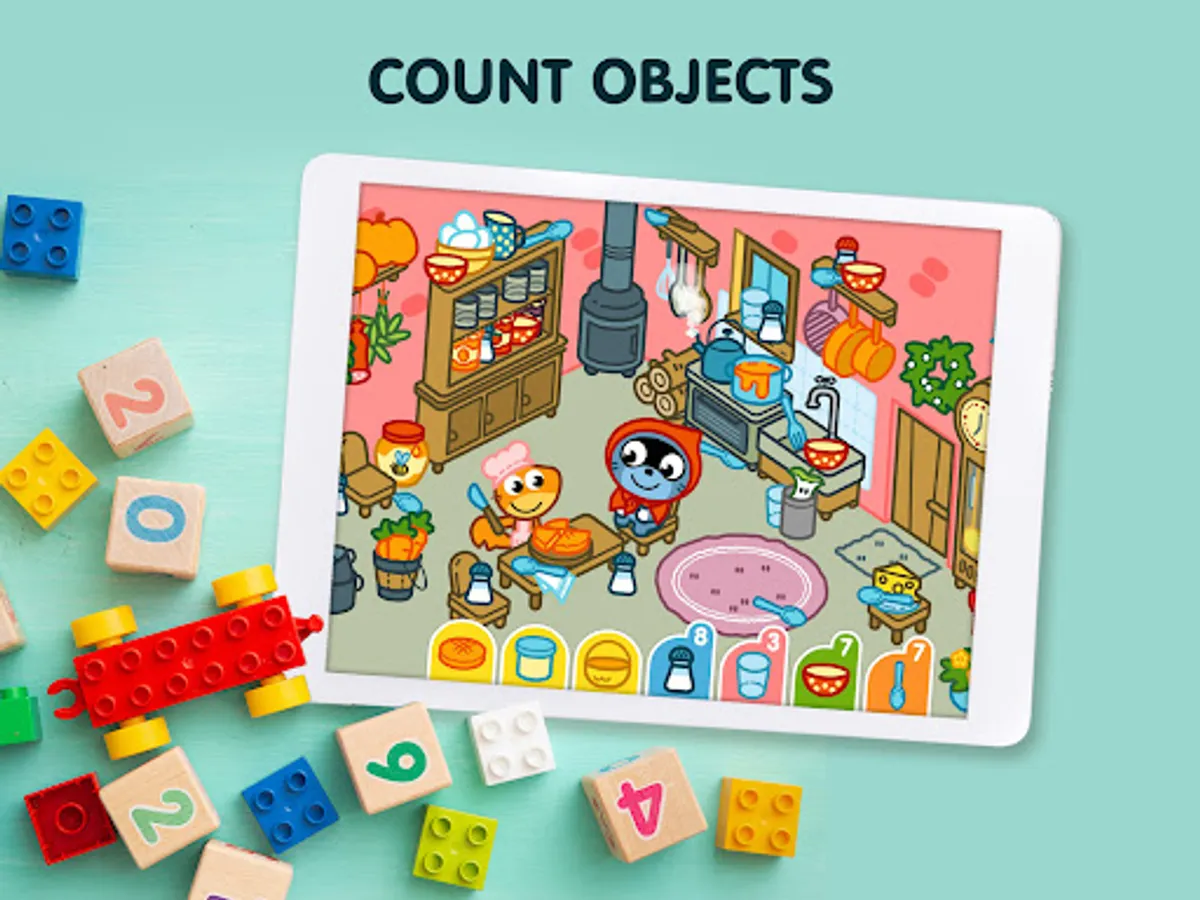Seek and find characters and objects to advance the story across 15 pictures. Behind rocks, under tables, in trees... there are lots of places to hide! Explore and search the pictures with your fingers. Open, lift, clear... If you can't find something, use the magnifying glass for help.