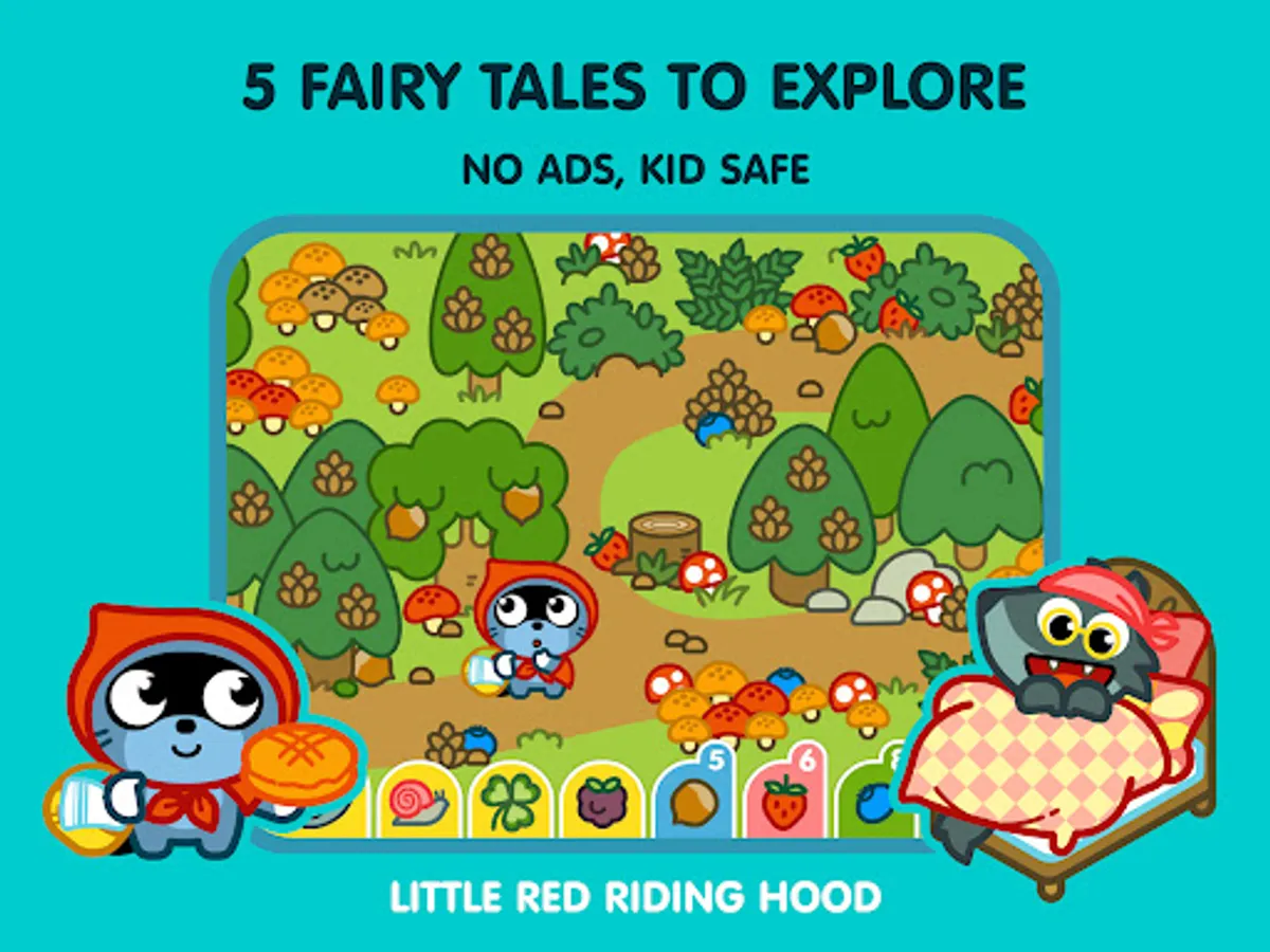 Visit Little Red Riding Hood's forest, the three little pigs' house, the little mermaid's ocean, the ogre's castle from Puss in Boots, and Jack's beanstalk.