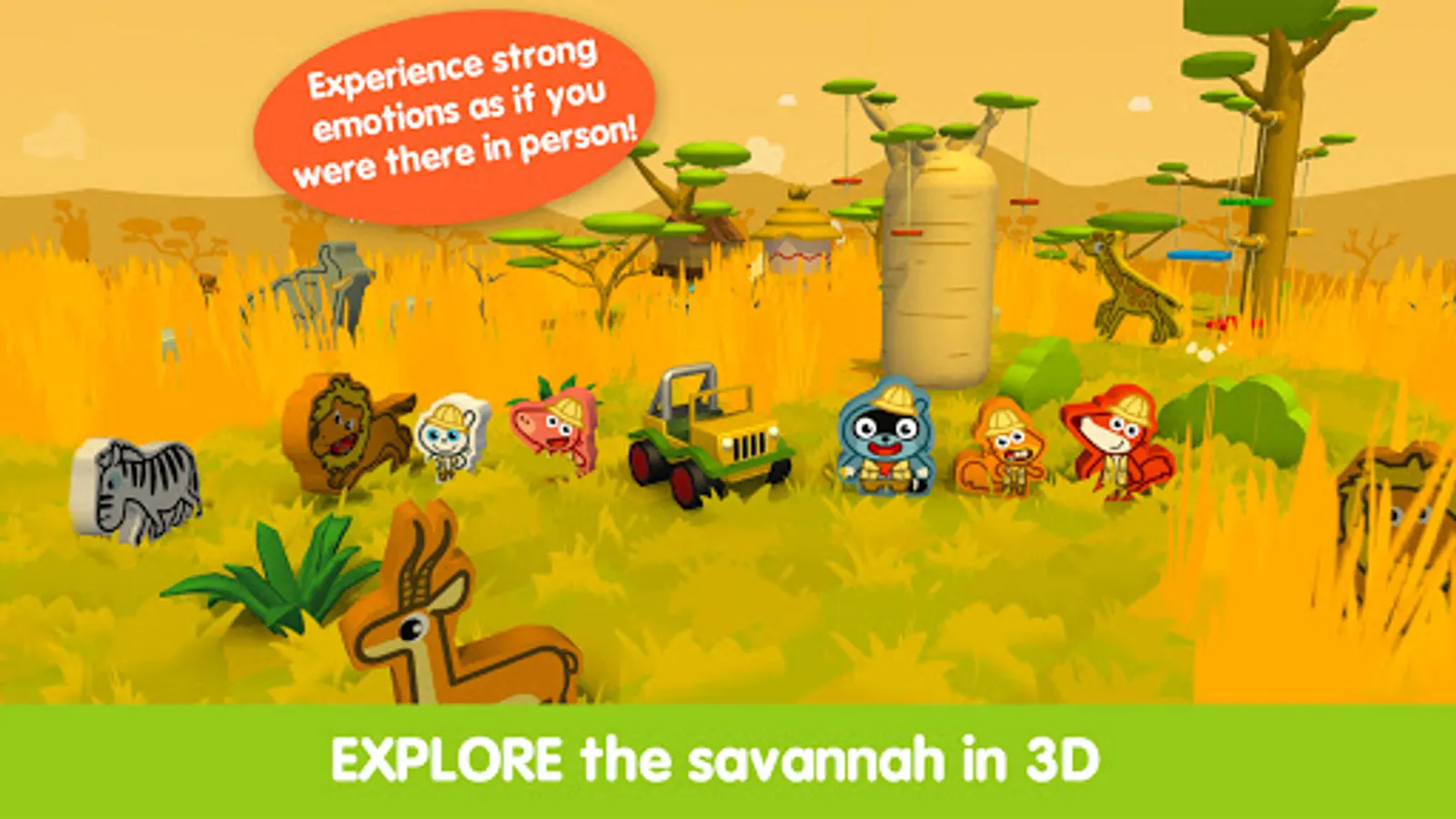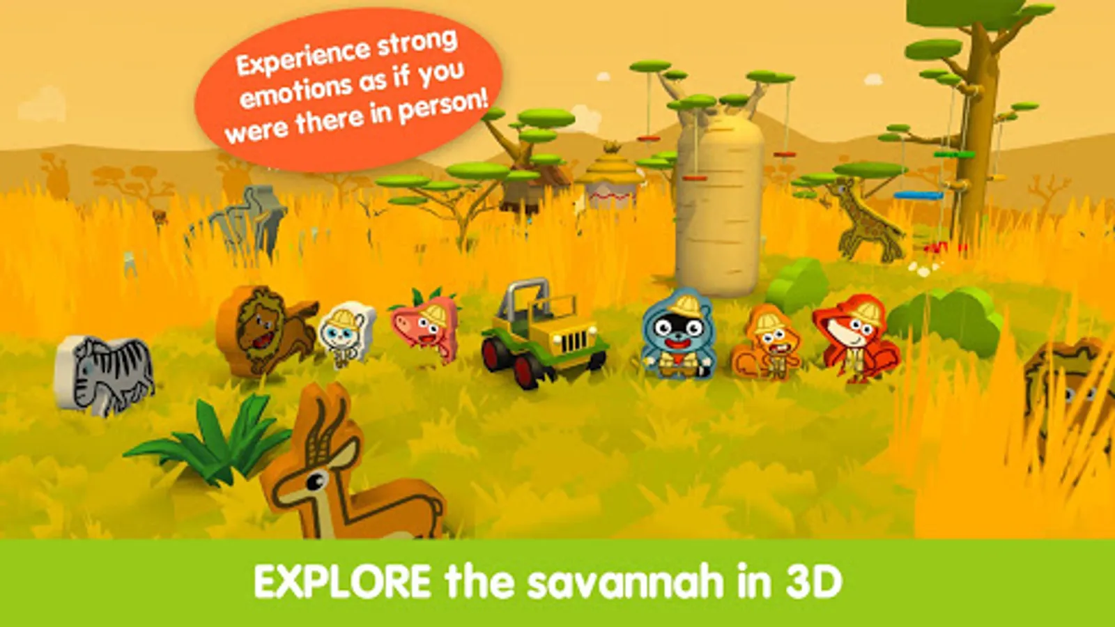 Thanks to you, Pango and his friends can take pictures of wild animals and follow them in an SUV or minibus. To refresh themselves, they'll dive into a waterfall and take advantage of the shade of giant trees to slide, trampoline or swing. Once night falls, they'll choose a place to sleep before dancing around a very festive campfire.