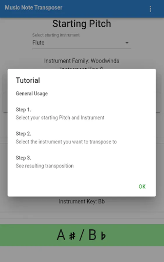 Have you ever been in a rehearsal and needed to transpose a note from another instrument? Maybe you've forgotten your music theory, or never knew anything about it. Then the Music Note Transposer app is the answer for you.