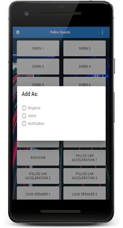 The Police soundboard is here! With over 20 sounds that you might hear while watching an action movie, or your favorite police TV show. Maybe you hear sirens outside your window constantly, or simply want to prank your friend. These realistic sounds are as authentic as it gets. Better yet, why not make one of them your ringtone, alarm, or notification sound!