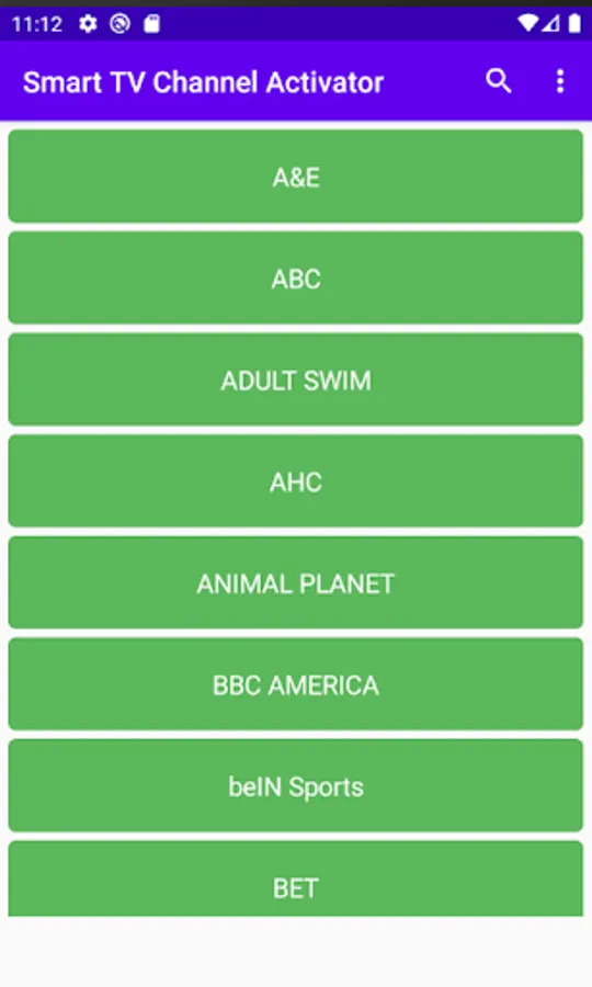 This app assists the viewer in the activation process of certain network channels that have a Smart TV application. Simply open the app, search for the TV Channel you are trying to activate, press the button, and you are instantly brought to that networks activation web page. From here, simply enter in the code provided on your screen, and login with your personal user credential from your cable provider.