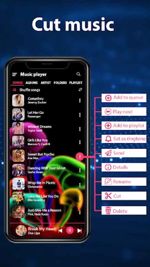 Music player supports all audio and music formats including MP3, MIDI, WAV, FLAC, AAC, APE, etc.