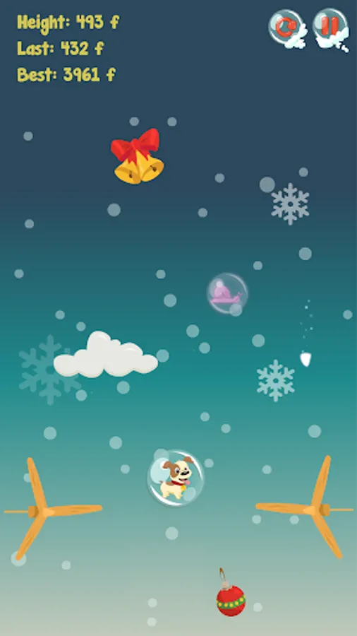 Celebrate the Christmas with Spout the flyer .. YES your little puppy flying in his bubble, guide him with fans, fly him up as high as you can, & collect as many gifts and ornament as you can.