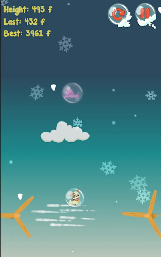 In this snowy theme go skyward as high as you can , avoiding the falling snowballs by controlling the fans to protect bubble not to burst up.