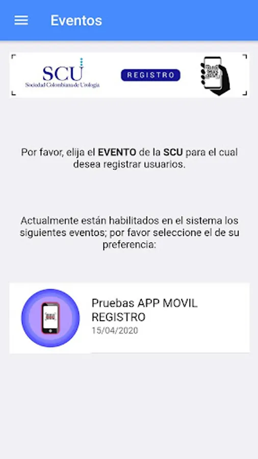 Mobile app developed to streamline the user registration process in mass events of the Colombian Society of Urology (SCU).