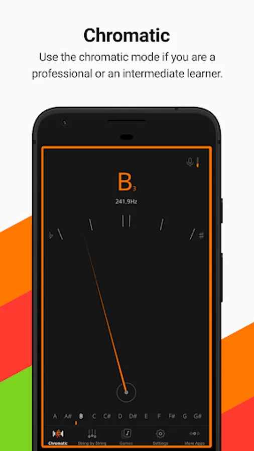 Also tune your bass, cavaquinho, banjo, ukulele, violin, viola, cello or any other stringed instrument.