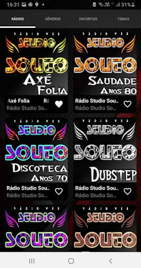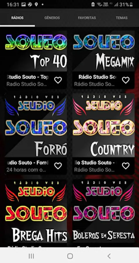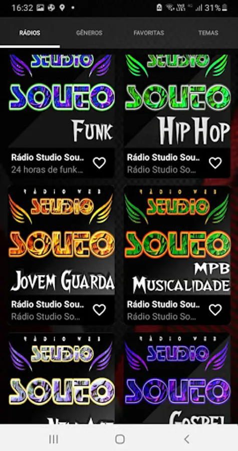 Studio Souto Multiradios application brings together more than 35 stations from different musical genres