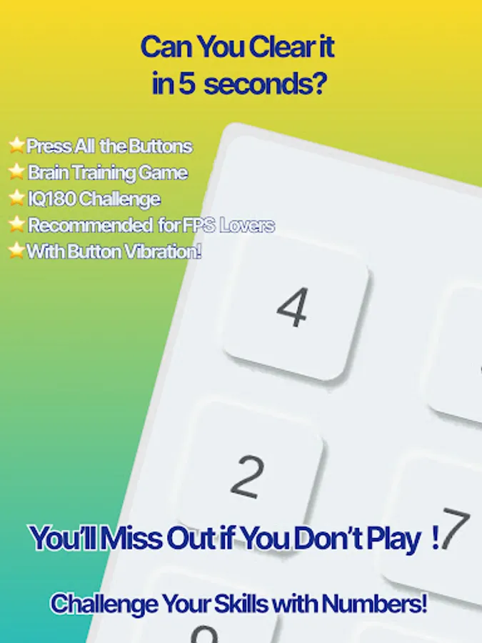 If you're looking for a new way to challenge yourself and improve your mental abilities, Number Quick Press Test is the game for you.