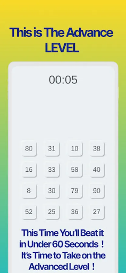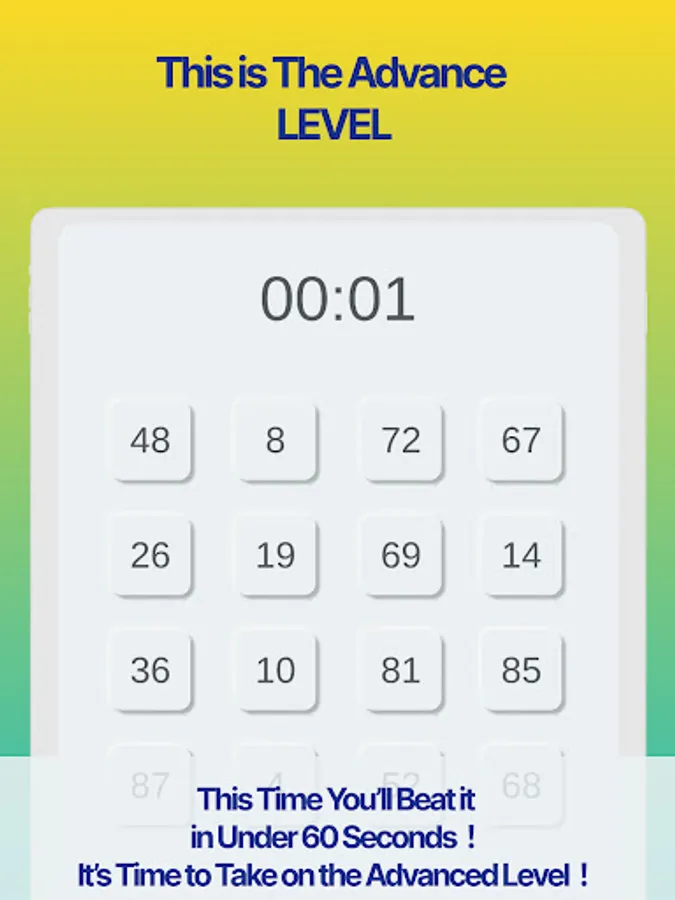 By playing this game, you can improve your peripheral vision and memory through number recall exercises and quick tapping.