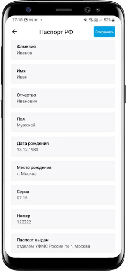 TIM is the most convenient, to date, tool for working with personal documents. Almost everyone has a moment when they need to provide their personal data to fill out questionnaires, contracts, statements, consents, etc. Not only can this process take a certain amount of time, but the document itself may not be with you. With our application, this problem is solved very easily.