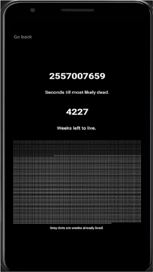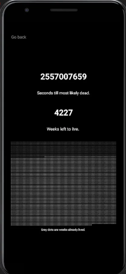 This app shows how many seconds and weeks you approximately have left to live in a visual way - by only asking for your age.