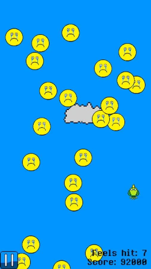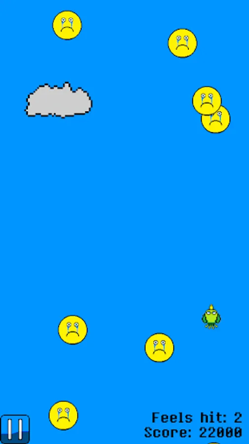 So what is the gameplay of Sad Bird? You play as a depressed bird who is being bombarded with feels. Your goal is to dodge as many as you can and get as high of a score as you can. No matter how hard you try, though, your bird will become overwhelmed by the feels eventually and be unable to continue. The more feels that hit you, the more depressed your bird becomes and the slower he moves. The feels also just come faster and faster, leading more and more to your bird's inevitable demise.