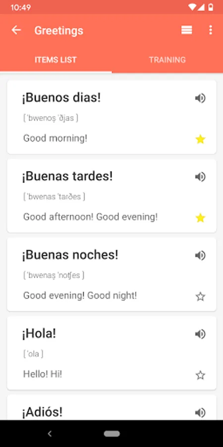 - Select favorite words and phrases to create your own study list or improve your vocabulary.