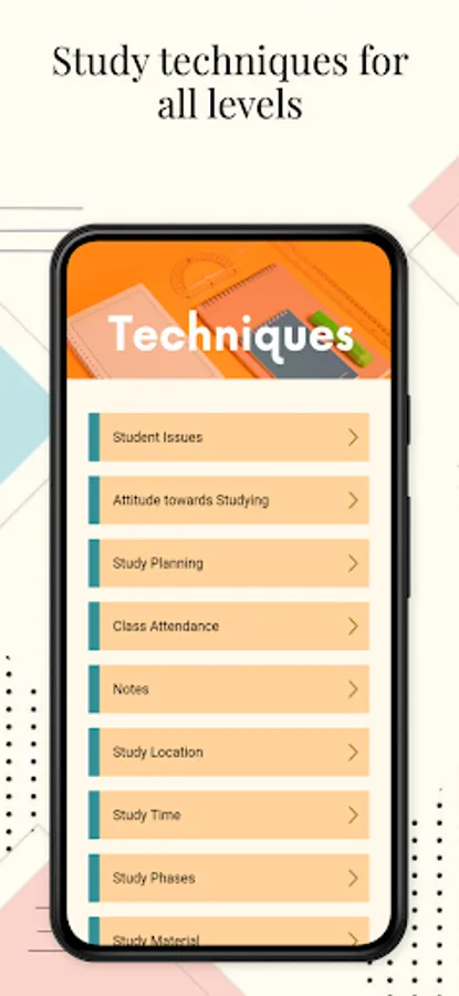 The tool called "Study Techniques" offers methods, techniques, tricks, and approaches that will make the studying process easier, allowing you to absorb more information in a dynamic and enjoyable way.