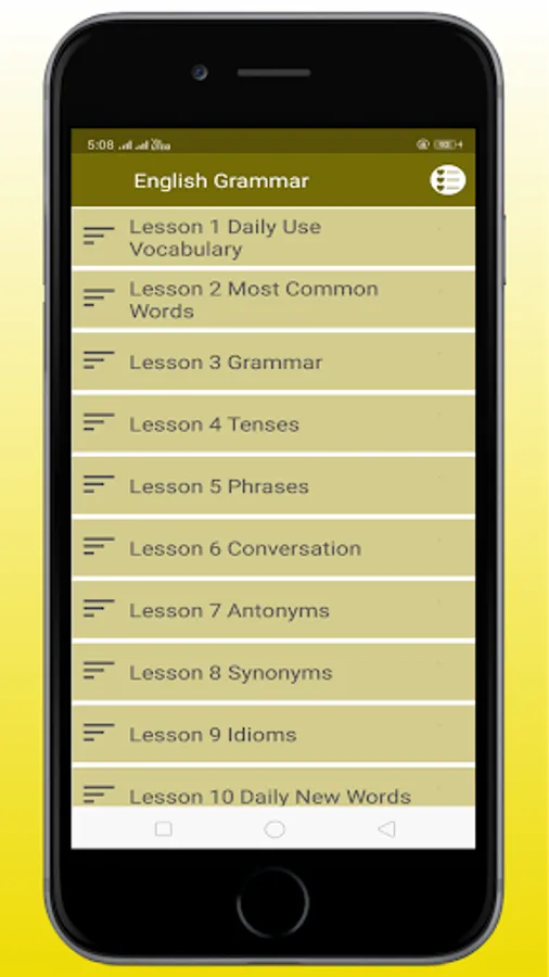 Learn English Grammar with your android phone and test your grammar skill.