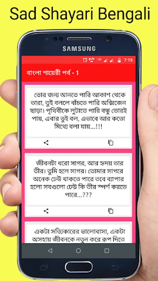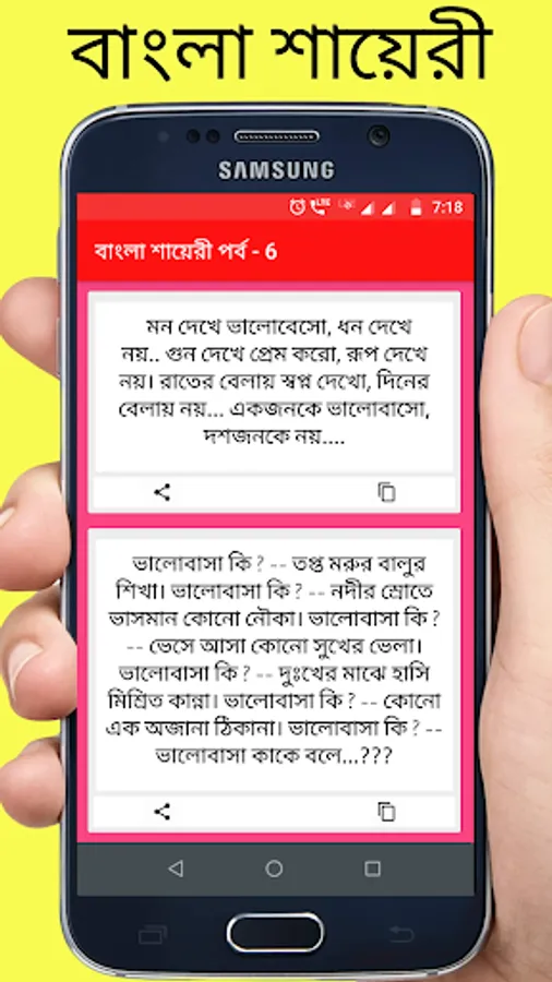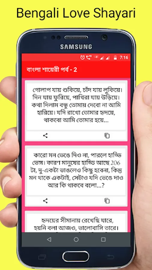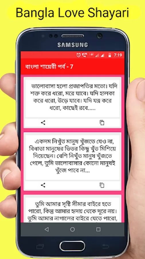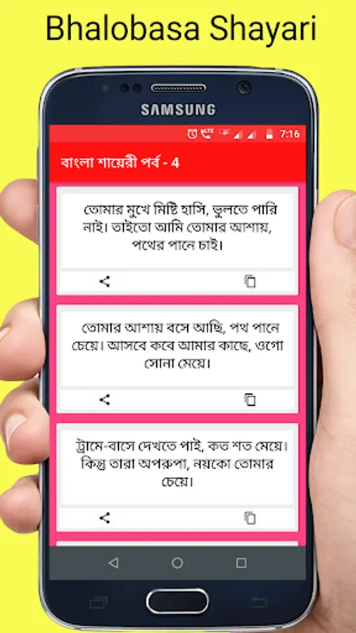 রোমান্টিক প্রেমের মেসেজ App অত্যন্ত সহজ এবং সুন্দর একটি App, যেখান থেকে আপনি ভালোবাসার শায়েরী গুলিকে খুব সহজে Copy এবং Share করতে পারবেন।