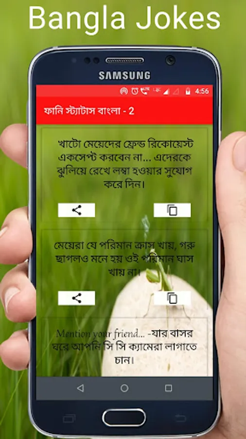 সারাক্ষন হাসিখুশি থাকতে হলে এবং অন্যকে হাসিখুশি রাখতে হলে আমাদের এই Funny Status Bangla App টি ব্যবহার করুন।