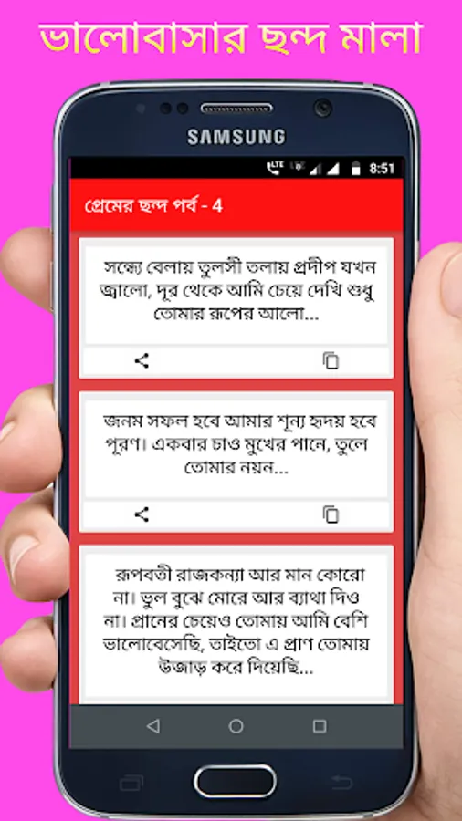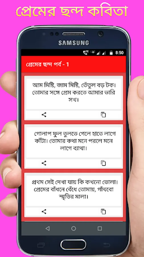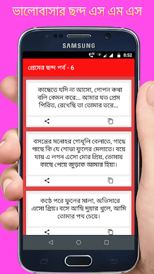 এই App টি সম্পূর্ণ ফ্রি এবং আপনার প্রিয় মানুষটিকে প্রেমের ছন্দ শেয়ার করুন খুব সহজ উপায়ে।