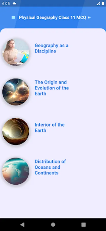 Our app also features a vast bank of MCQs, allowing you to test your knowledge and prepare for exams. Each question is designed to cover key concepts of Physical Geography, making sure that you're well-prepared for your exams.
