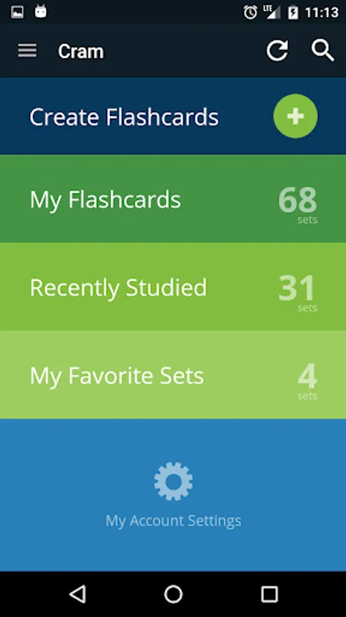 When you log into your Cram.com account the app automatically downloads your account information including: your created flashcard sets, your favorite flashcard sets and the flashcard sets you study most frequently.