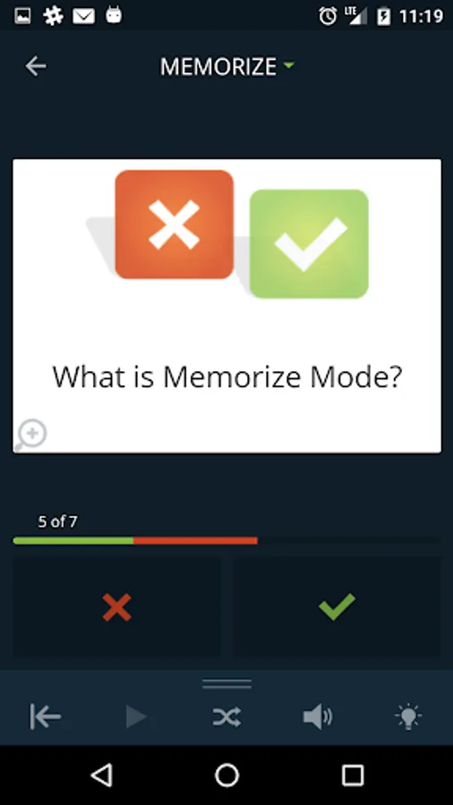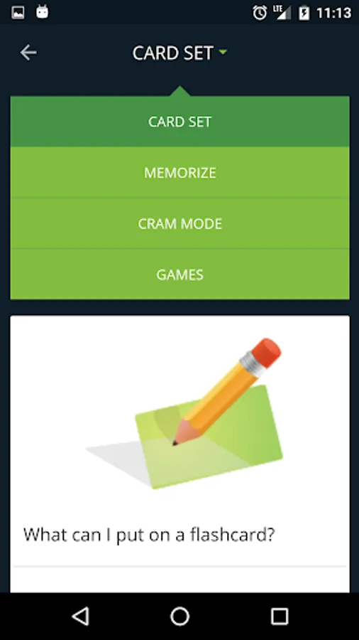 Card mode allows you to quickly view an entire set of flashcards and repeat them as often as you like. Memorize mode automatically hides flashcards you know so you can concentrate on the ones you still need to learn. You can even enable the cram option to supercharge your studying with spaced repetition similar to the Leitner system!