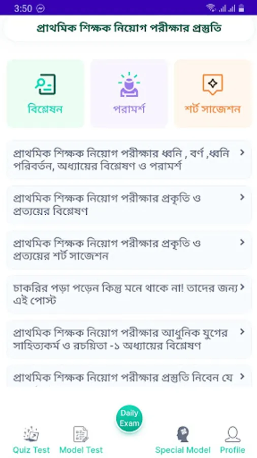 সবার উচিৎ কোন পরীক্ষা দেওয়ার আগে সেই পরীক্ষার অতীত প্রশ্ন দেখা এবং কিছু পর্যালোচনা করা। প্রাইমারির শিক্ষক নিয়োগ পরীক্ষাতে ৮০টা প্রশ্ন থাকে। কিন্তু প্রশ্ন গুলো কোথায় থেকে থাকে এবং কোন বিষয় গুলো অধিক গুরুত্বপূর্ণ সেই বিষয়ের উপরে অধ্যায় ভিত্তিক শর্ট সাজেশোন পাবেন।পড়ার থেকে বেশি প্রয়োজন কোন বিষয় পড়তে হবে বেশি, তাই আপনাদের সময় কে কাজে লাগিয়ে ভাল প্রস্তুতি নিতে এই Android apps সাহয্য করবে । এখানে পাবেন শিক্ষক নিয়োগ পরিক্ষা্র জন্য