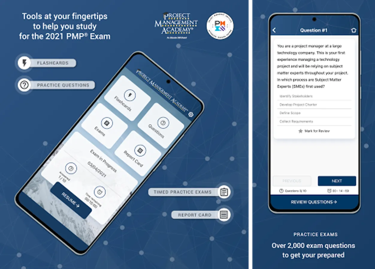 Project Management Academy (PMA) is the most trusted name in project management training. PMA’s 10+ years of experience training 10,000 PMP students per year has allowed us to bring our deep experience, tools, and study aids to your mobile device for on-the-go studying. Review PMP terminology flashcards, participate in Q&A sessions, and take timed practice exams to test your knowledge of the updated, 2021 PMP Exam Content Outline material. Download this app for free to begin your PMP Exam preparation journey.