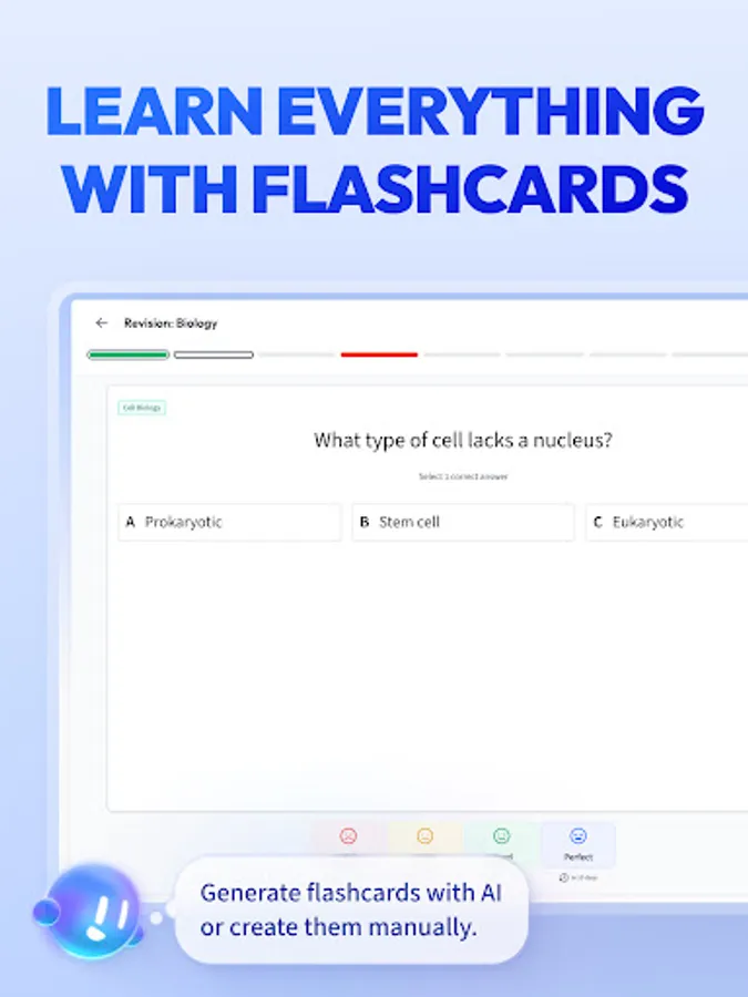 » Generate flashcards with the help of AI: Create flashcards with one click. With the power of AI, creating learning materials has never been easier.