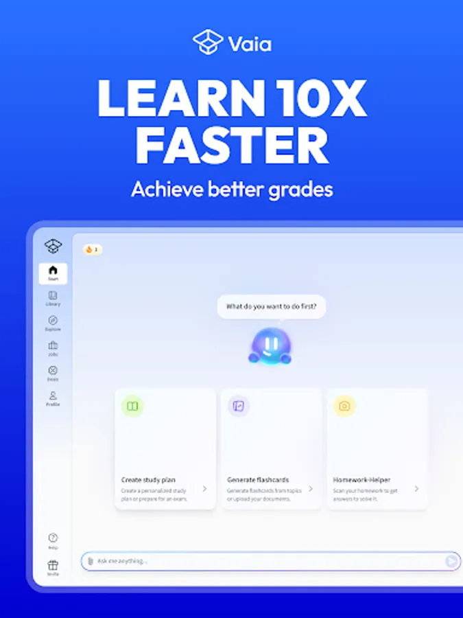 Vaia: We've got all the tools you need to succeed in your studies. Say goodbye to endless hours of cramming and hello to smarter, stress-free learning. Unlock millions of expert-verified resources, create flashcards & notes IN SECONDS with AI and plan your revision with the smart to-do list—all powered by AI for the best study experience 🚀