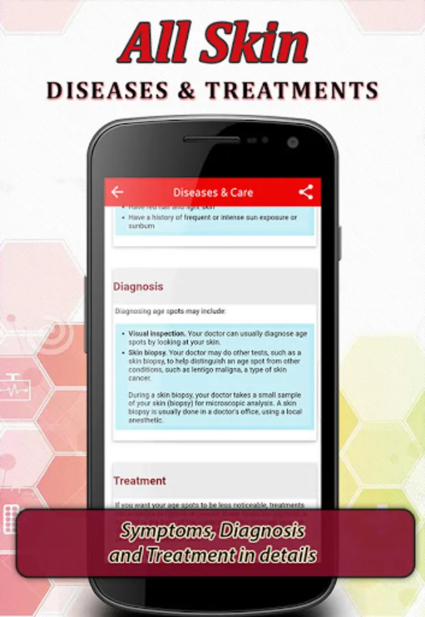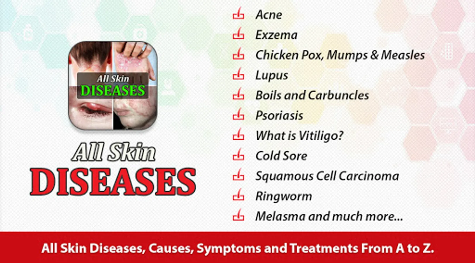 Disclaimer: All Skin Diseases and Treatment app, that provides info about Skin care, symptoms, diagnosis, prevention measures, causes and treatment. Keep in mind this Skin Diseases book should only be used for information purpose not as a medical advice book.