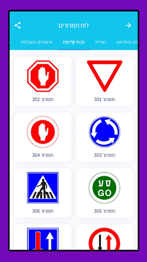 4) Test board - a list of all the signs that you need to know for the exam with a full explanation of each sign.