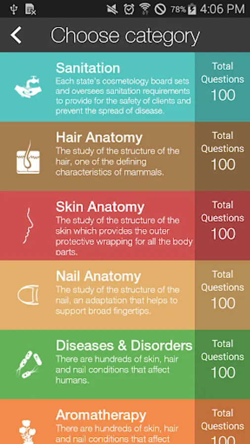 A beautifully designed quiz app to help you prepare for the Cosmetology Board Exam. Simple and intuitive user interface. Quick and portable, on the go studying. No need for those heavy books or bulky note cards. No internet connection required.
