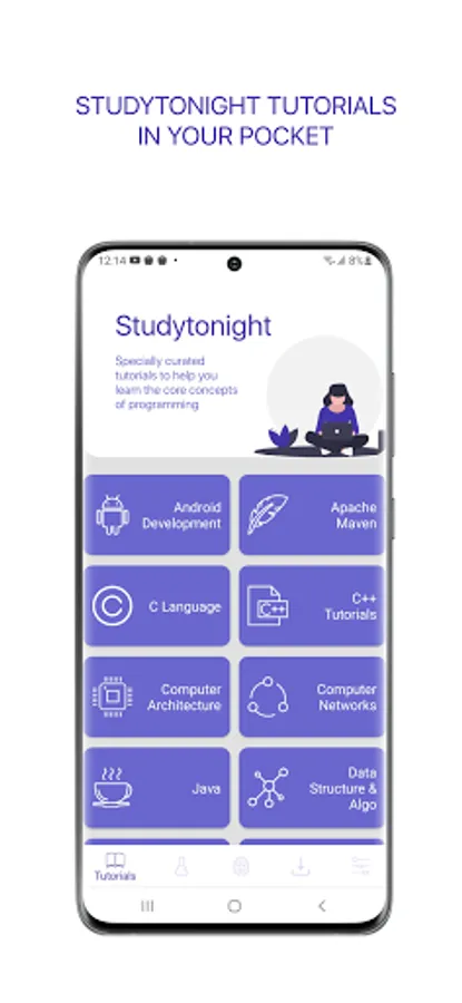 Studytonight Android App brings to you a great and colorful studying experience, with easy-to-understand and simple tutorials for computer programming subjects like Core Java, C++, C Language, Maven, Jenkins, Drools, DBMS, Data Structures, Computer Networks, Ruby, JSP, GitHub, Python, REST Web Services, CSS, Game Development with Unity 2D and 3D both, SCRUM Framework, Apache Cordova, Android with MIT App Inventor Tool and Servlet.