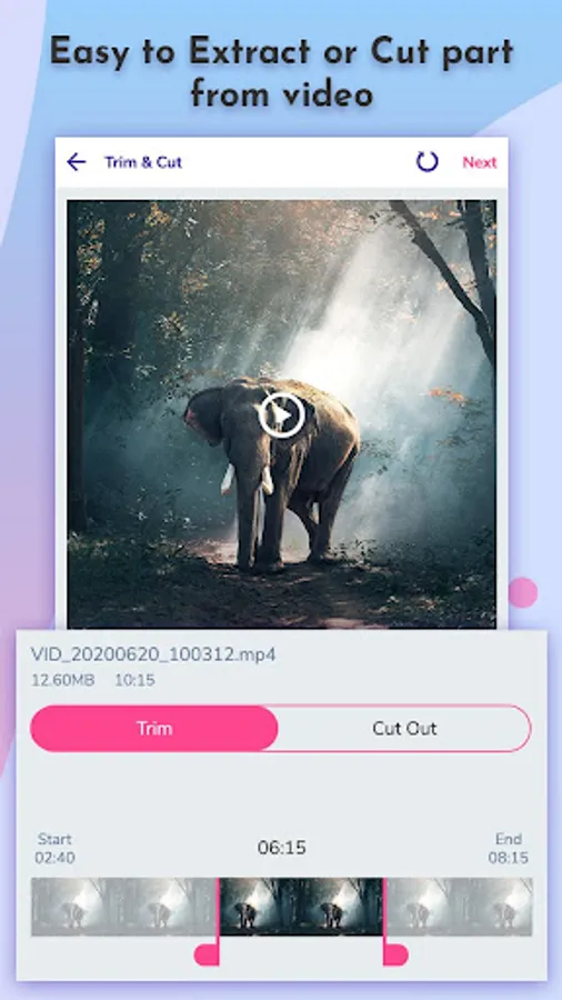 - Cut, Compress & Size Resizer feature will allow you to select video from gallery and set the start and end point to cut and resize the video same time.