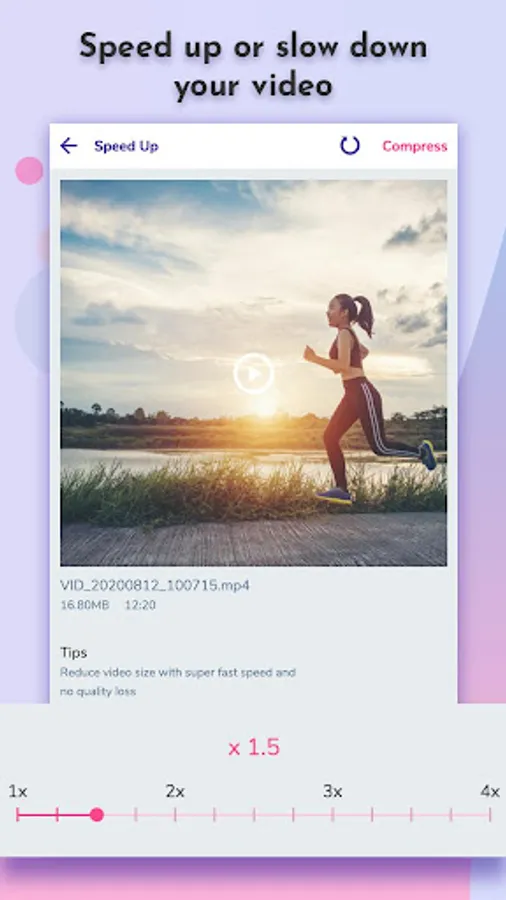 - Compress video to very small size, freeing up a lot of memory space on your device.