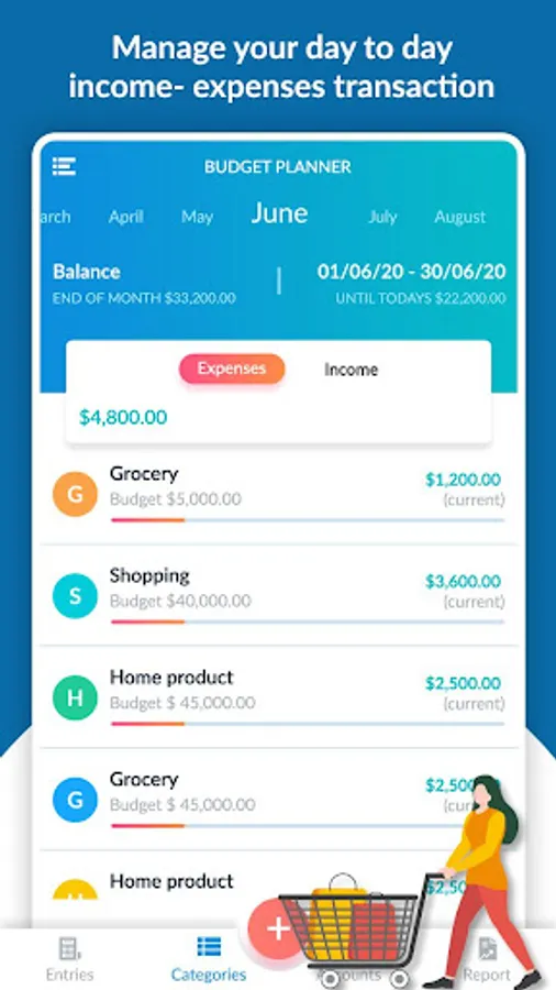 ✔Budget Planner : Set a limit on how much to spend in a category and track overspend finances. Monthly Budget Planner - Expense Manager shows your budget and expenses by a graph so you can see the amount of your expense against your budget quickly.