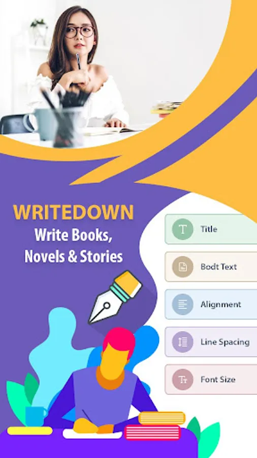 WriteDown: Write Books, Novels is a Free, Simple, Light and Compact app to write your random thoughts, script or book chapter anytime and anywhere.