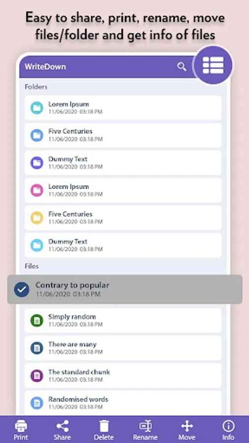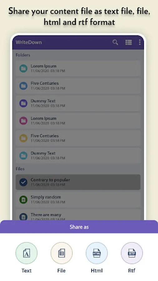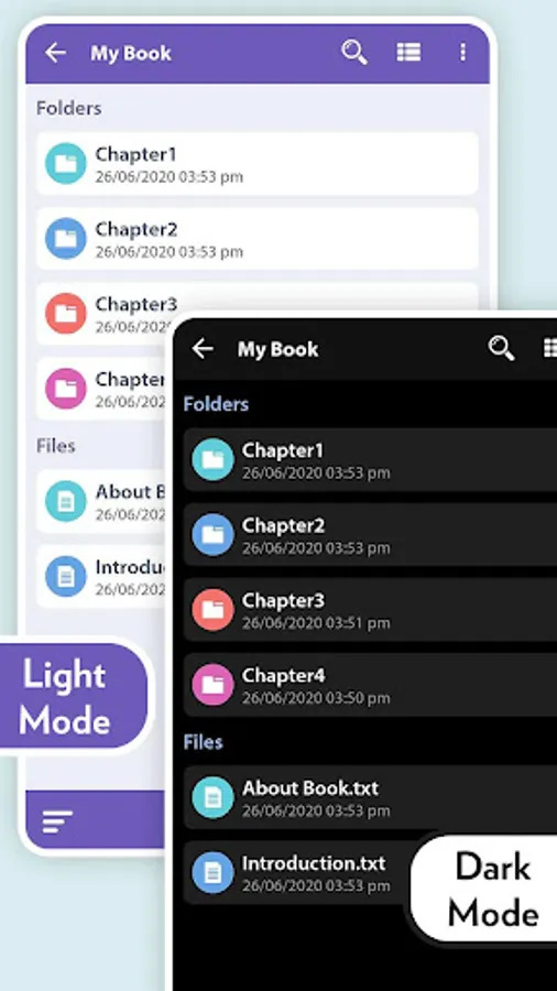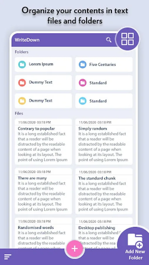 The app helps you to organize your content in text files and folders. Allows you to create text files and folders to manage your script or book content.