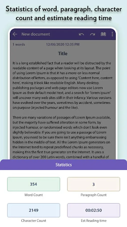 - Calculates statistics of content like – word count, paragraph count, character count, and estimate reading time.