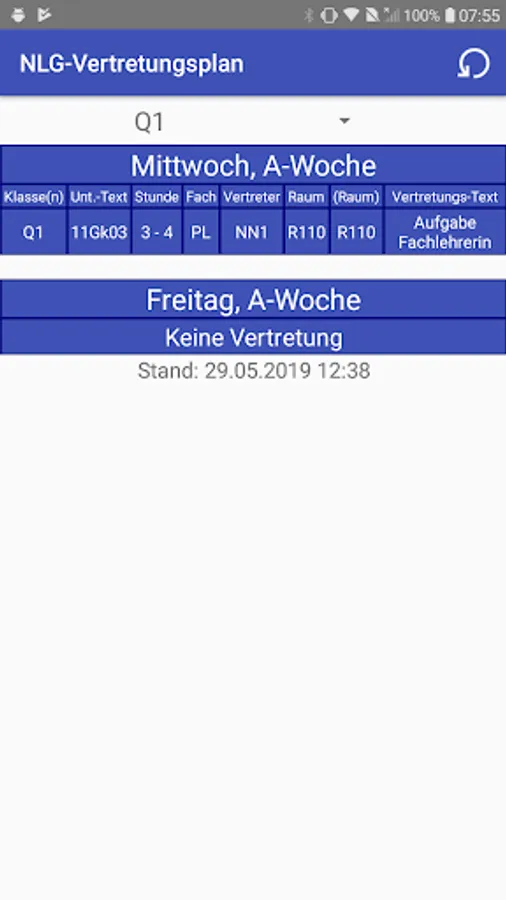 Inofficial representation plan for the Niklas Luhmann Gymnasium.