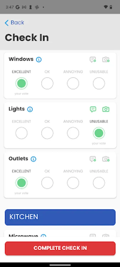 - Photos and comments throughout your check-in will be saved on record