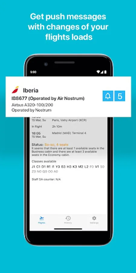 - Flight info subscription, get push messages with loads on your flight
