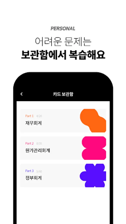터치 몇 번이면, 회계학 말문제 반복 학습을 언제 어디서든!