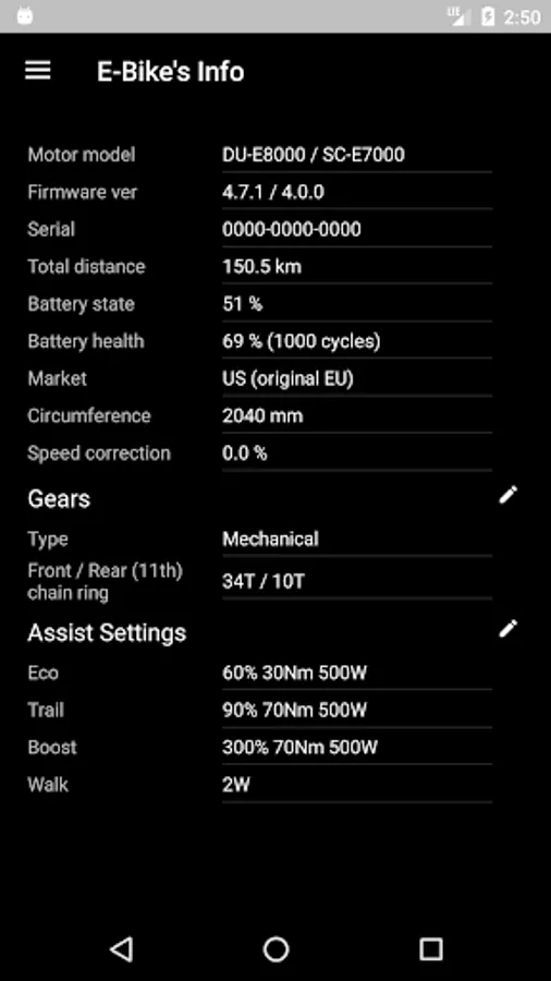 Warning: the new EP801 and EP6 motors do not support changing advance settings (region, circumference). All other motors with the latest firmware do not support changing advanced settings via Bluetooth.
