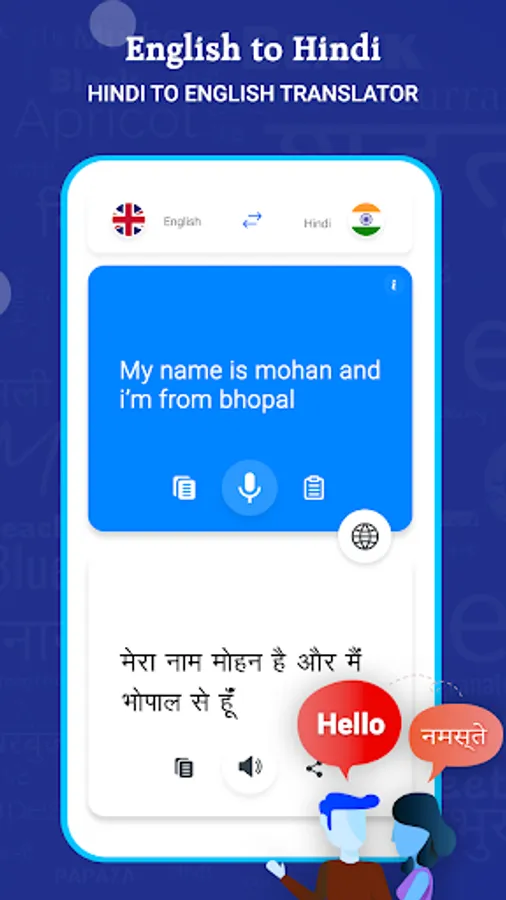 -- कोई भी वाकिया या शब्द हिंदी से अंग्रेज़ी में ट्रांसलेट कर सकतें है।