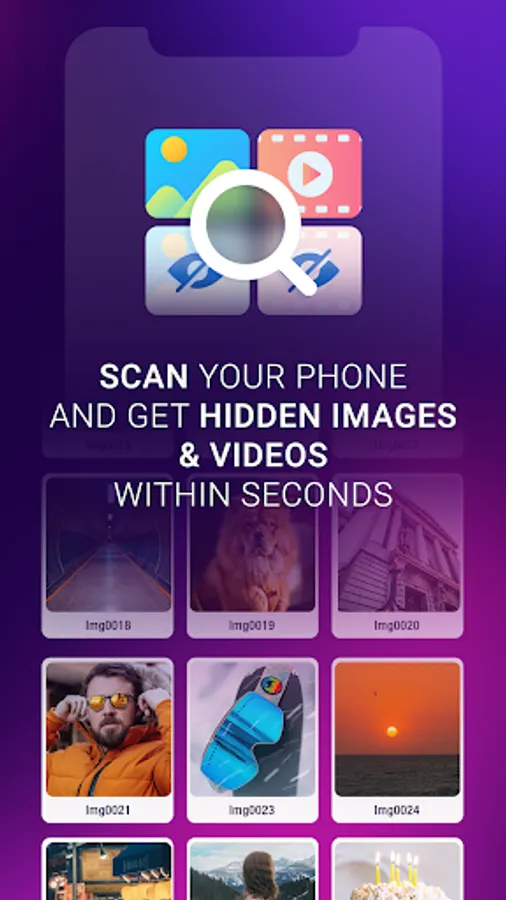 - Scan device for find image or video and app will perform action to find all hidden images or videos in your smartphone on one click.